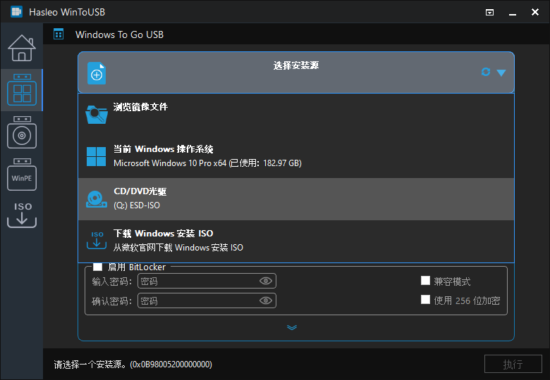 作为全球首款第三方的 Windows To Go 创建软件,Hasleo WinToUSB 提供了多种方式以帮助用户创建便携式 Windows,通常我们推荐用户使用 Hasleo WinToUSB 将 Windows 从 Windows 安装镜像安装到 USB 驱动器作为便携式 Windows。但是如果您只有一张 Windows DVD 安装光盘而没有 Windows 安装镜像文件,您也可以使用 Hasleo WinToUSB 轻松地将 Windows 从 CD/DVD 光驱安装到 USB 移动硬盘或 U 盘作为便携式 Windows(Windows To Go)。
